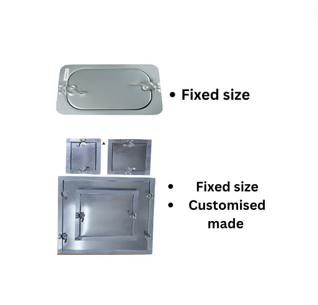 Access Door: A removable or hinged panel that provides entry to enclosed areas, allowing for maintenance, inspection, or access to hidden components.
